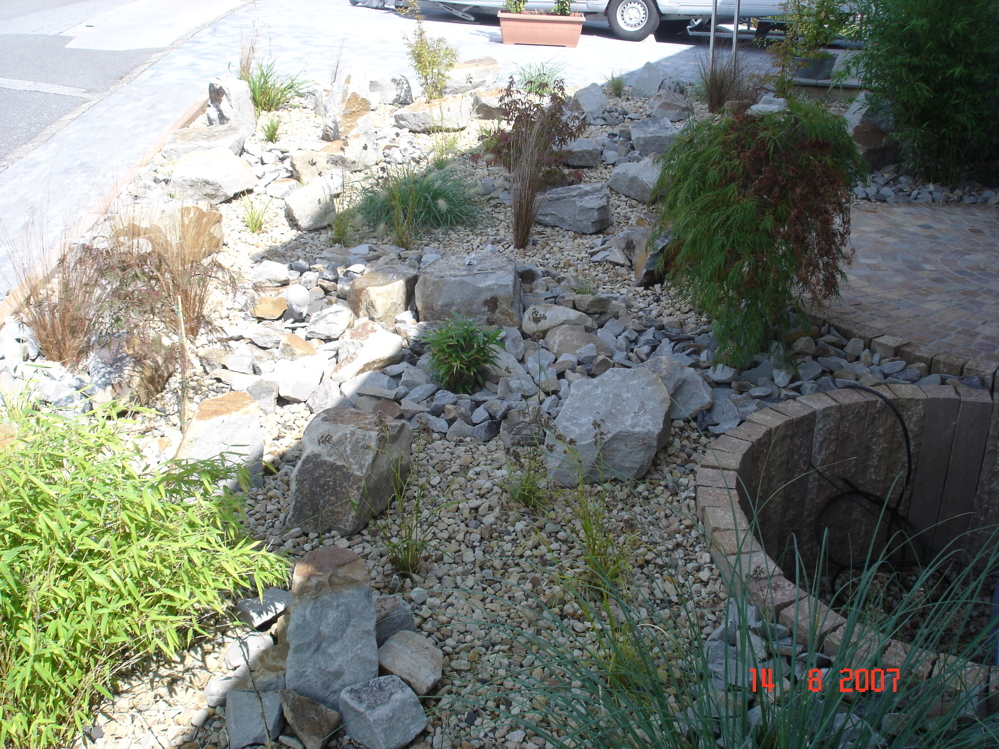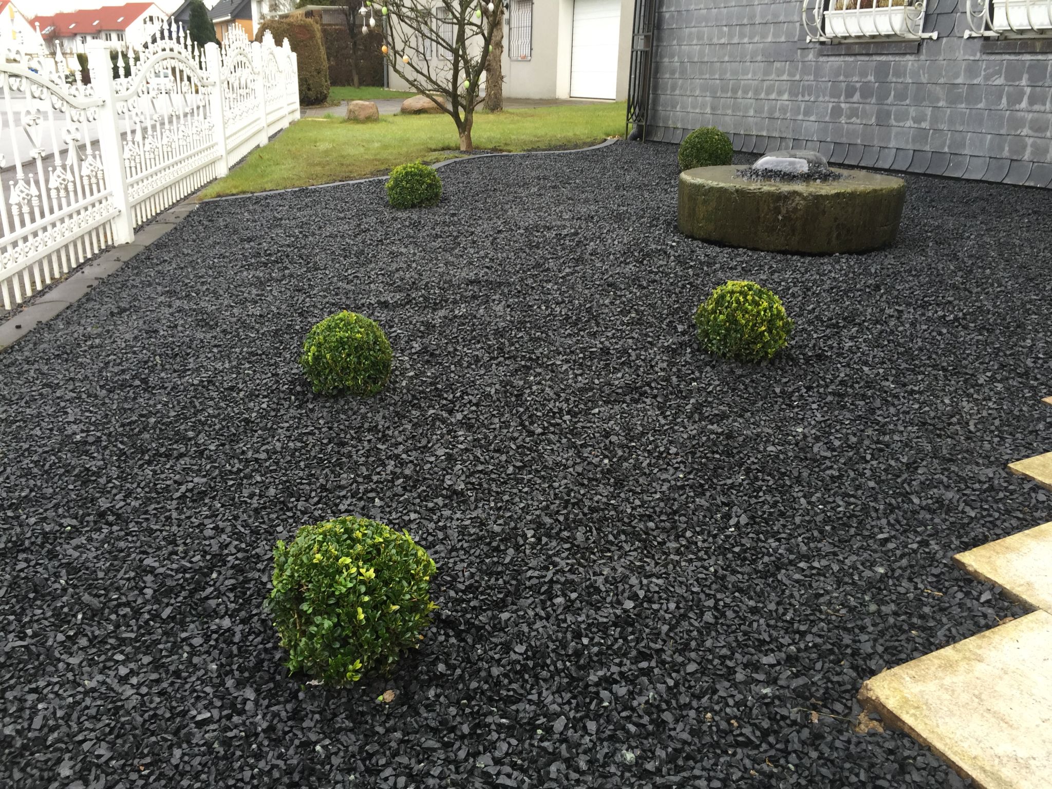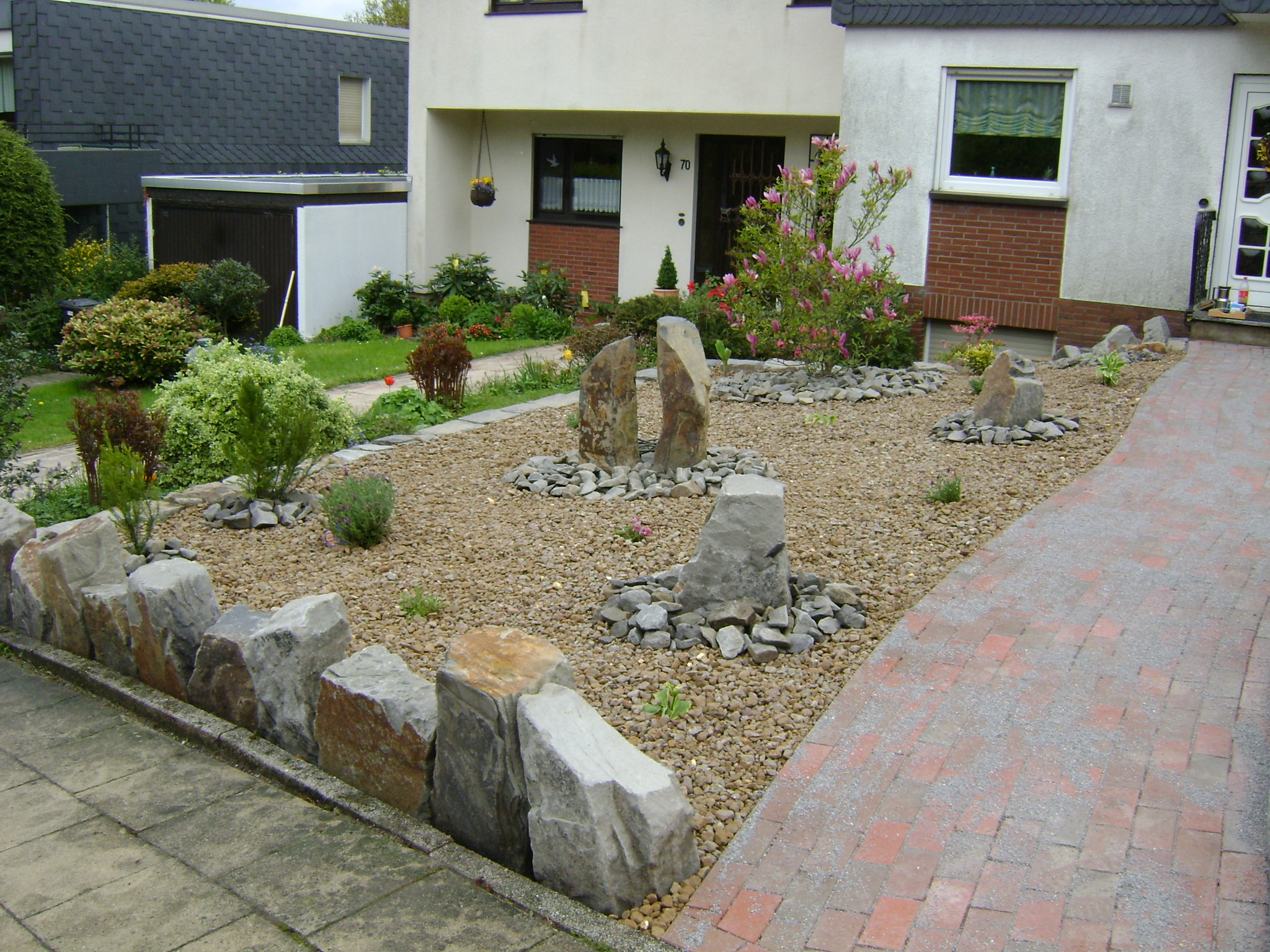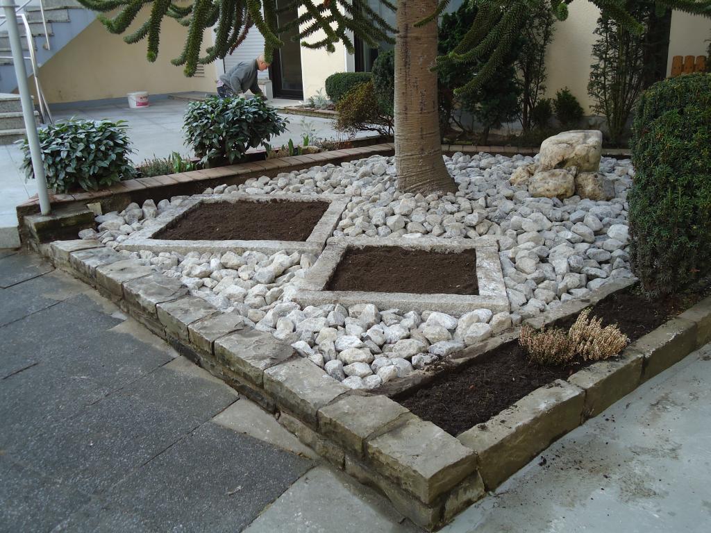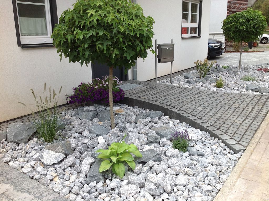 Steingärten sind gerade im Bereich des Vorgartens eine pflegeleichte und schöne Variation. Durch die Anlage mit einem Vlies als Basis vermindert man das lästige Ausbreiten von unerwünschtem Unkraut. Somit enfällt in diesem Bereich das lästige und zeitintensive Entfernen von Unkraut.